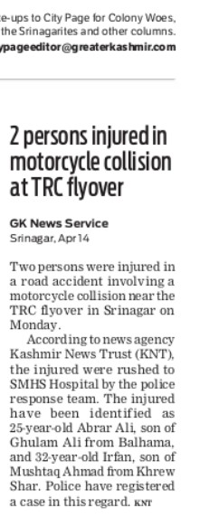 Kashmir News Trust (KNT) is a Srinagar-based independent news agency dedicated to delivering timely, accurate, and in-depth coverage from Jammu and Kashmir. Popularly known as KNT, the agency provides a wide range of news, including politics, governance, conflict, environment, culture, and human interest stories. With a strong emphasis on credibility and ground reporting, KNT has emerged as a trusted source of information for readers across the region and beyond. Its reports are widely carried by local and national media outlets, making it a vital link in the flow of news from Kashmir to the wider world.
