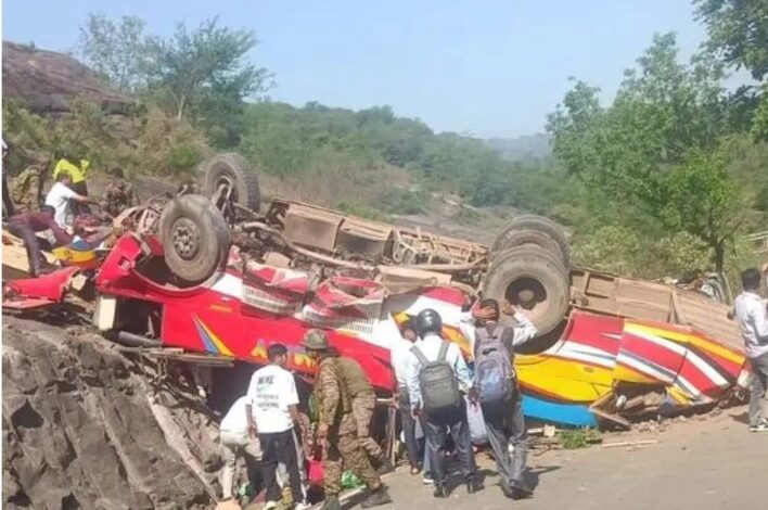 Udhampur, April 20, KNT: At least ten people were killed and several others injured after a passenger bus overturned on the Ramnagar–Udhampur highway near Kaghote in Jammu and Kashmir on Monday.