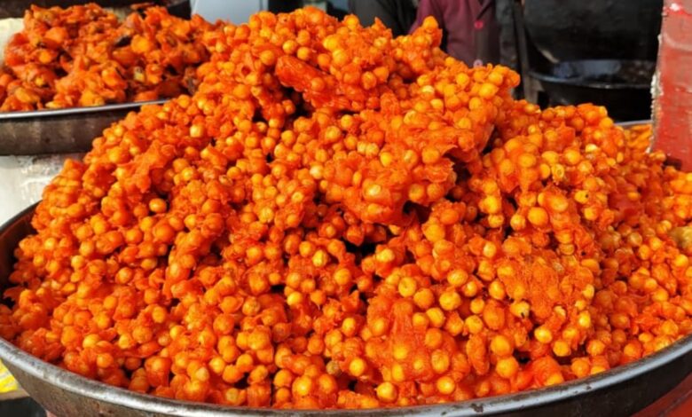 ‘Aalu Manj’, a deep-fried gram-flour fritter snack, is widely sold by roadside vendors across Sopore and other parts of north Kashmir and is especially popular among school students and shoppers.