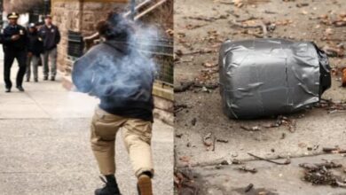 Police in New York detained a man after he allegedly threw what officers described as “ignited devices” near protesters demonstrating…