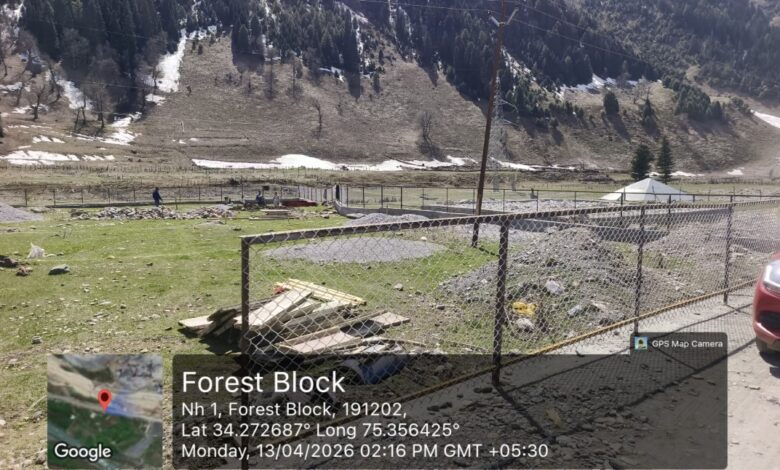 Ganderbal, April 13, KNT: Authorities in Sonamarg halted construction activity in the Sarbal area after reports emerged that concrete work was being carried out despite an existing ban in the eco-sensitive zone.