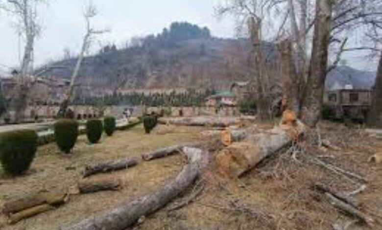 Srinagar, Feb 26, KNT: The Environmental Policy Group (EPG) has strongly condemned the shocking felling of centuries-old Chinar trees in Rani Bagh, Anantnag, calling it a grave violation of heritage and environmental laws. The trees, believed to be over 500 years old, held immense historical, cultural, and ecological significance, making their destruction deeply distressing.