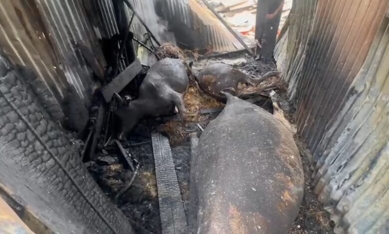 The cowshed, owned by Wali Mohammad Qureshi, was engulfed in flames during the night, with the animals trapped inside unable to escape, officials and locals said.
