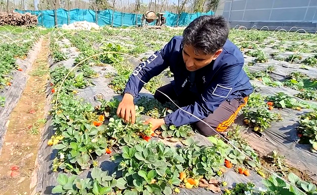 Kathua, March 7, KNT: A young farmer from Korepunnu village in the Hiranagar sector of J&K’s Kathua district has emerged as a success story in the horticulture sector by turning strawberry cultivation into a profitable venture, earning over ₹10 lakh annually.