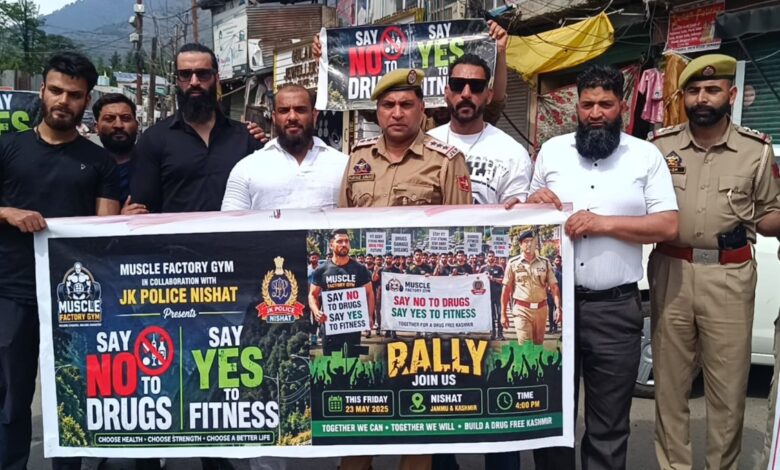 Srinagar, April 24, KNT: An anti-drug awareness rally was organized in the Brein–Nishat area of Srinagar on Friday, with participation from local youth, fitness groups, and police officials.