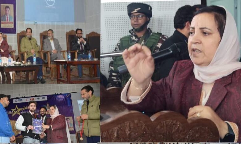Kulgam, March 29, KNT: Minister for Education, Social Welfare, Health and Medical Education Sakeena Itoo on Sunday felicitated meritorious students who secured top positions in the Class 12 examinations during a ‘Mega Shining Star’ ceremony held at Government Degree College (GDC) Kulgam.