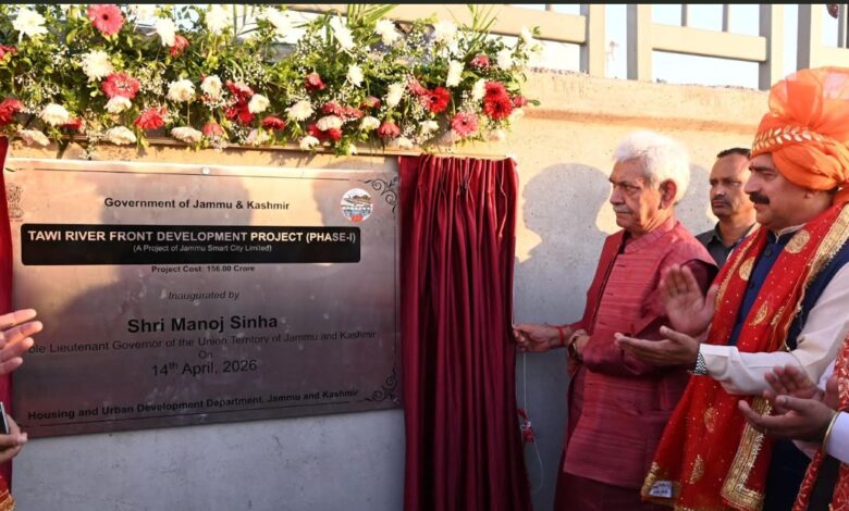 Jammu, April 14, KNT: Lieutenant Governor Manoj Sinha on Tuesday dedicated the Tawi Riverfront Project (Phase-I) to the public on the occasion of Baisakhi, marking a major step in the transformation of Jammu’s urban landscape.